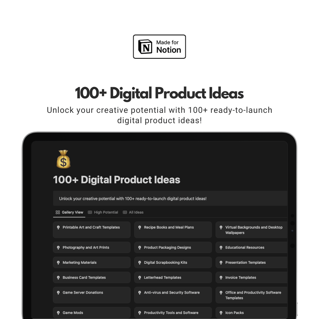 100+ Profitable Digital Product Ideas—all neatly organized in a Notion database that you can duplicate in one click.